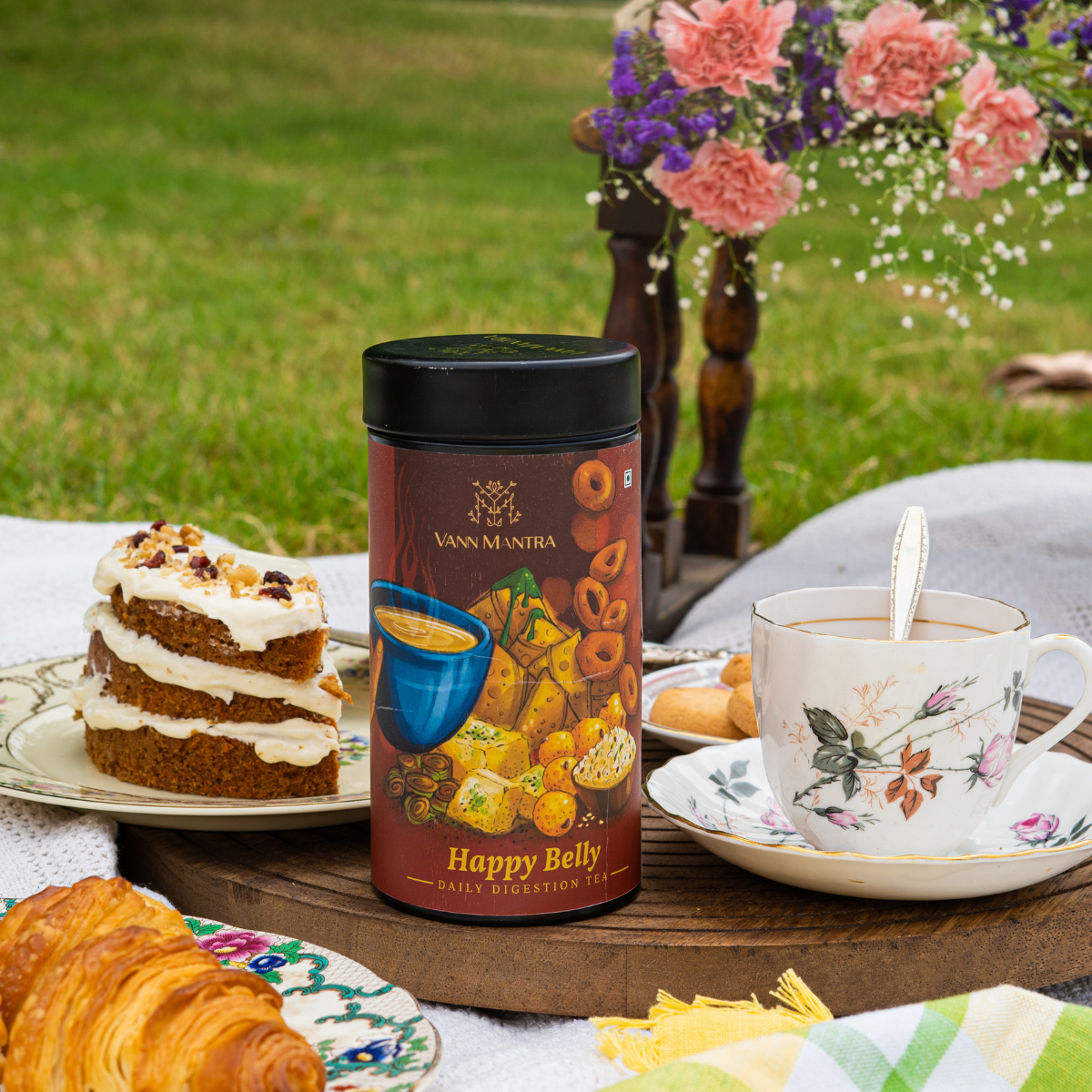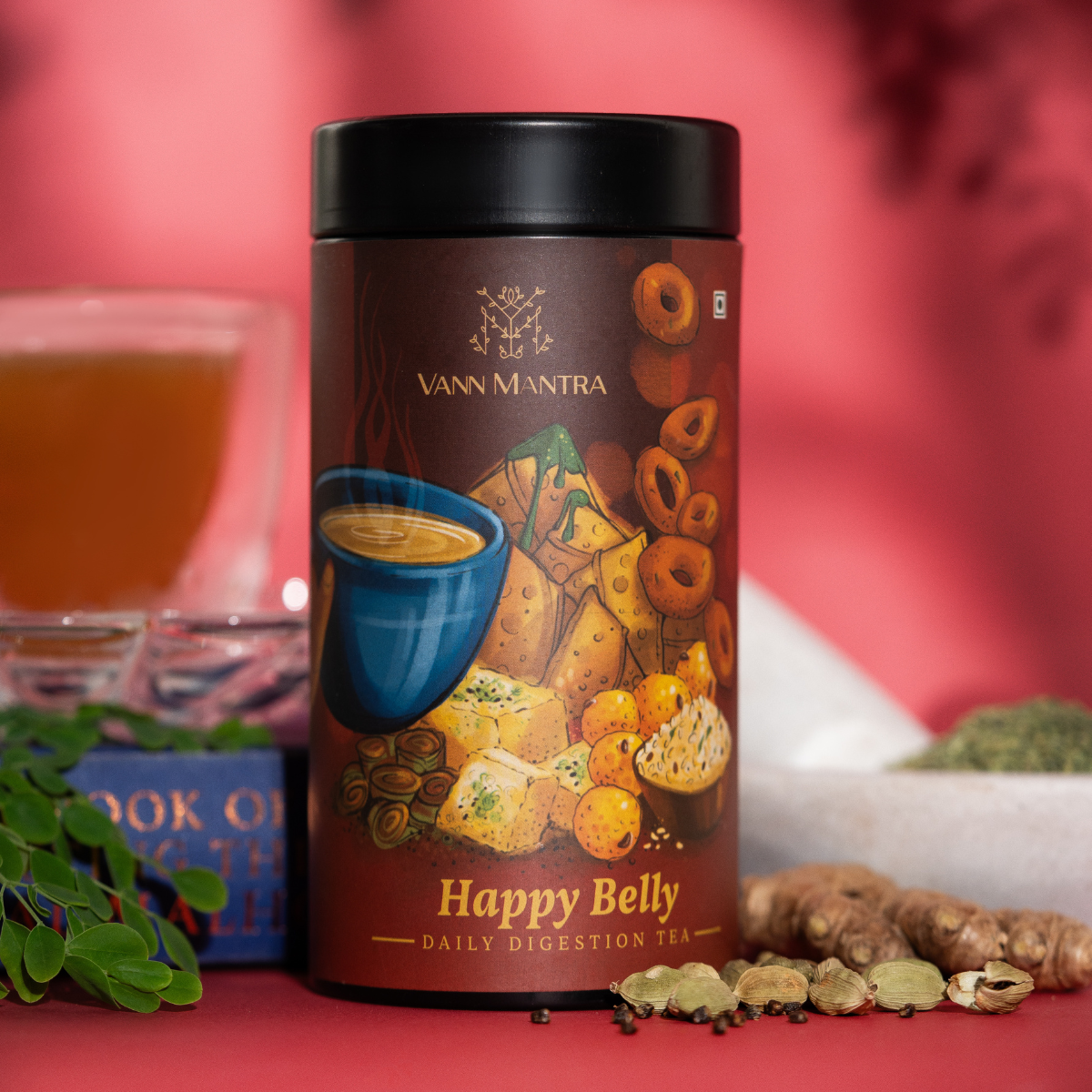 Our happy belly tea aids healthy digestion and can prevent bloating and acidity after a heavy meal. A brisk fragrant cup of tea, light and subtle with the wafting aroma of fennel, is delightful to consume on a full stomach. Fennel is consumed across India as an after-meal snack. The digestive properties of fennel are combined with licorice and moringa and coupled with the earthiness of cardamom to give a healthier way to consume a traditional after-meal digestive. The delectable after-taste keeps you feeling fresh long after drinking.