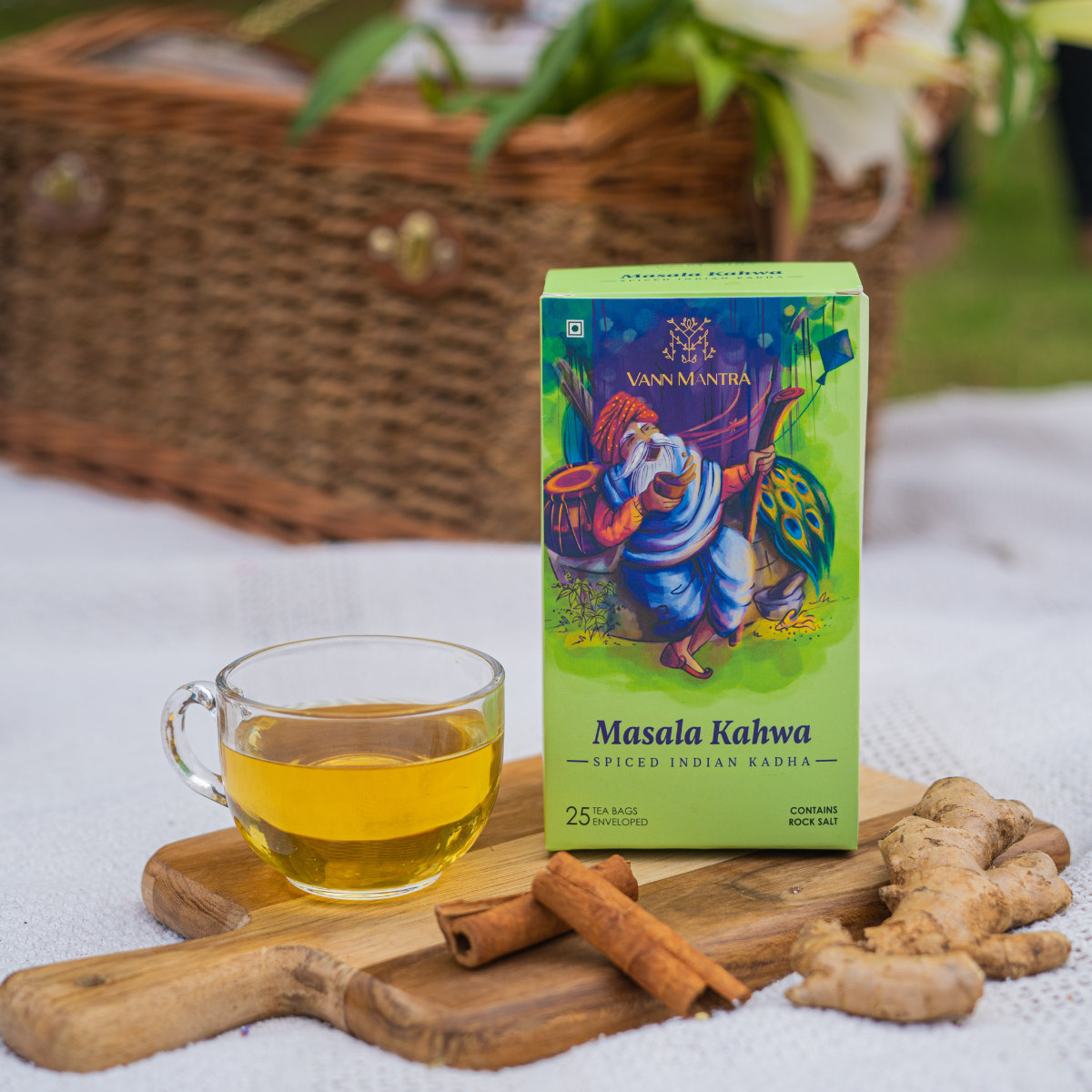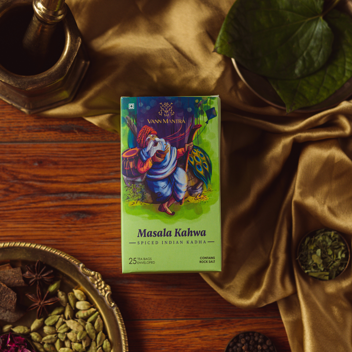 Our traditional cup of desi kahwa has been polished and perfected to get a hassle-free cup of tea that has the ability to transport you to the heart of India. The fusion of herbs and spices ranging from holy basil and ginger to black pepper and nutmeg forms the quintessential cup of tea consumed by people across the country. The hearty taste is complemented by anti-inflammatory properties that taste robust but feel delicate. Our elaborate blend gives an element of luxury to an age-old tradition. The traditional kahwa unites us, and our unique kahwa sets us apart.